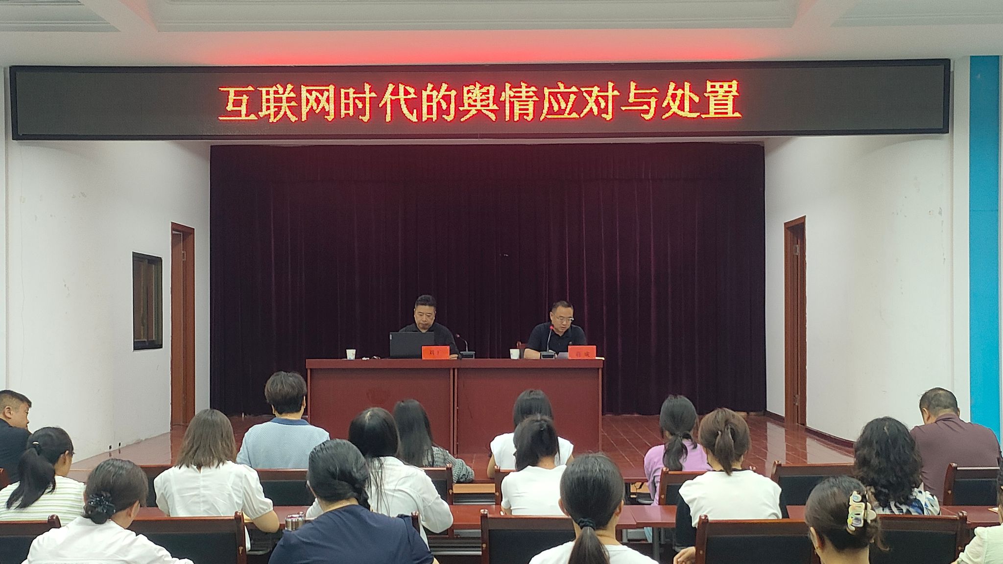 本網(wǎng)訊 6月20日,我校舉辦“互聯(lián)網(wǎng)時(shí)代的輿情應(yīng)對(duì)與處置”專(zhuān)題報(bào)告會(huì)。報(bào)告會(huì)特邀市委宣傳部劉廣科長(zhǎng)為主講人,副院長(zhǎng)陳友華出席,黨委副書(shū)記蔣成主持。學(xué)校全體中層正職、各教學(xué)系相關(guān)負(fù)責(zé)人、輔導(dǎo)員及相關(guān)部門(mén)工作人員參會(huì)。