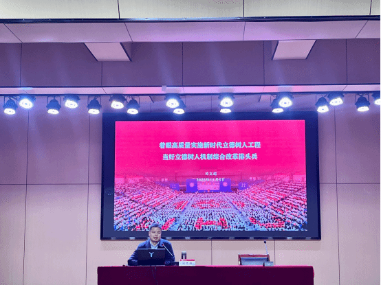 教育部高校思想政治工作創(chuàng)新發(fā)展中心(武漢大學(xué))副主任司文超以《著眼高質(zhì)量實(shí)施新時(shí)代立德樹(shù)人工程》為題作專題報(bào)告。他強(qiáng)調(diào),要深入理解新時(shí)代育人理念,樹(shù)立系統(tǒng)觀念和集成思維,強(qiáng)化思政引領(lǐng)力,扎實(shí)推進(jìn)立德樹(shù)人機(jī)制改革。