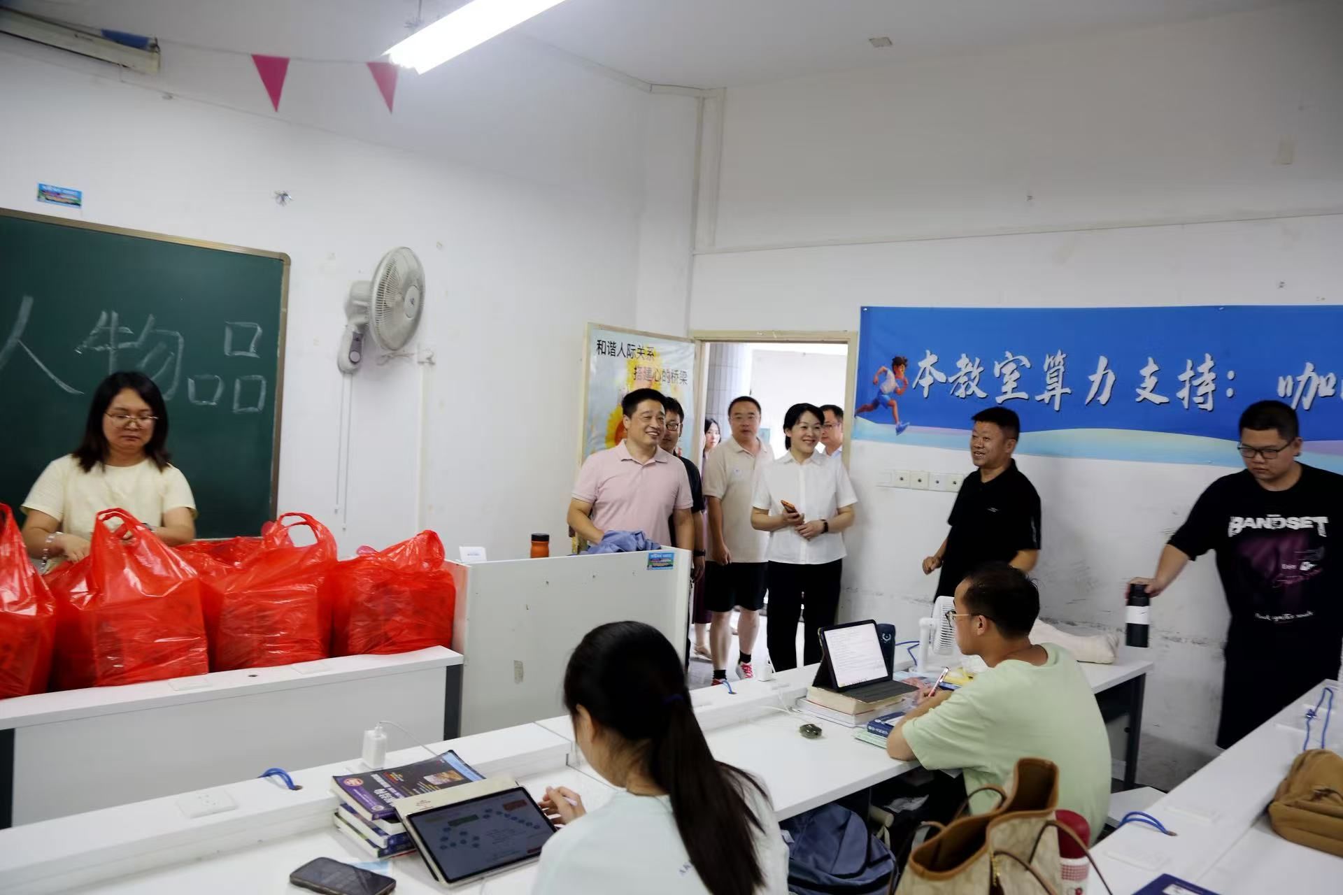 本網(wǎng)訊 7月9日,學(xué)校領(lǐng)導(dǎo)深入校園考研自習(xí)室等場所,看望暑期留校備戰(zhàn)考研和競賽培訓(xùn)的學(xué)生,為大家送去關(guān)懷與鼓勵(lì)。