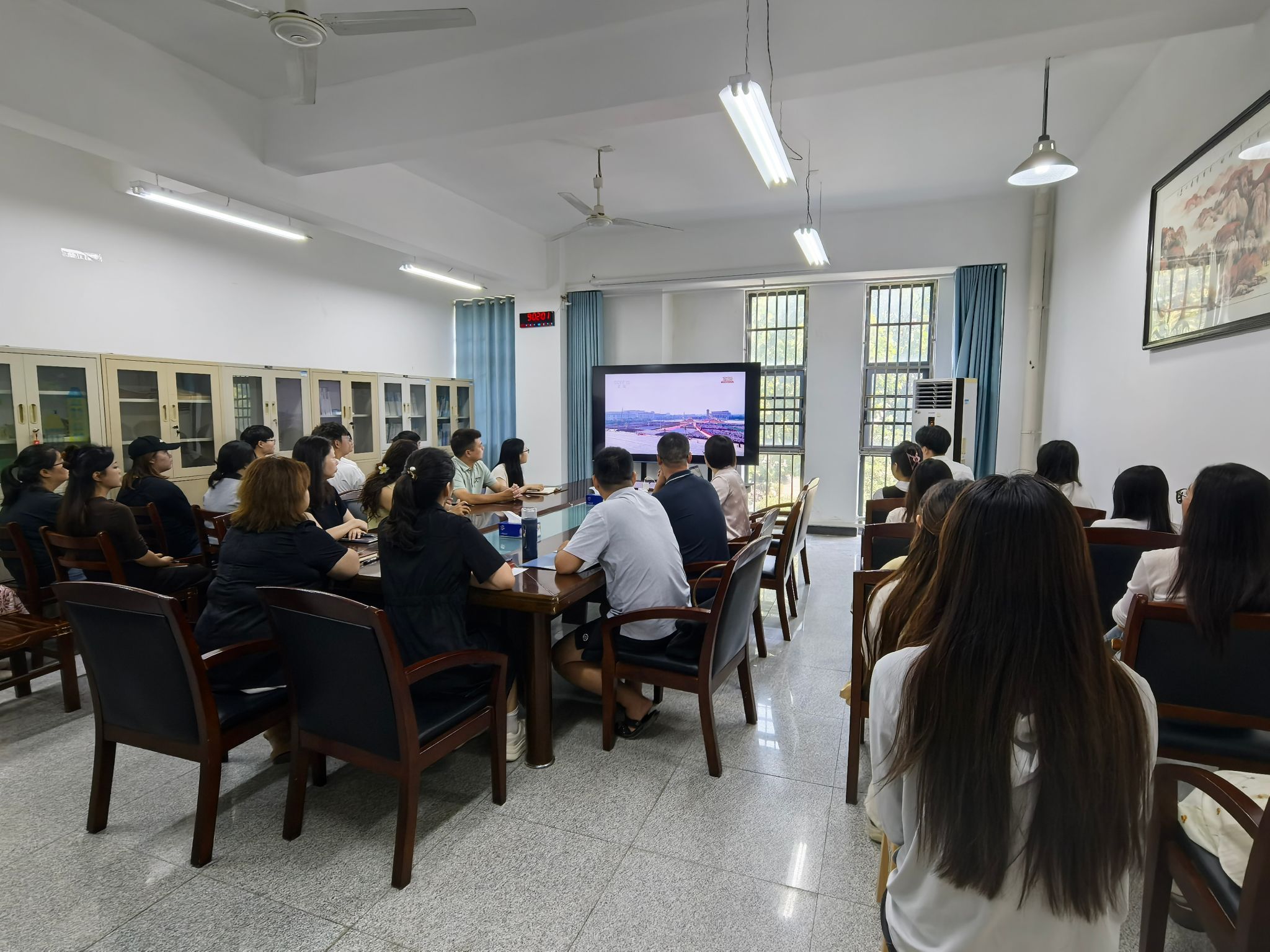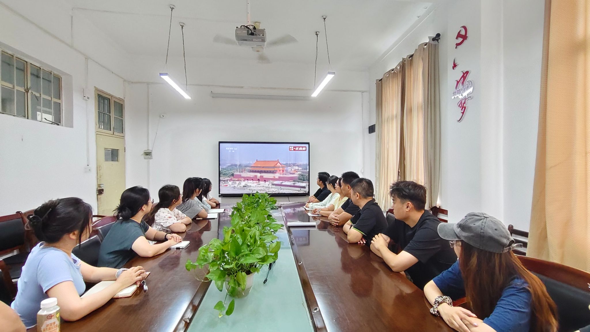 機關(guān)全體人員在科技樓多功能廳收看直播
